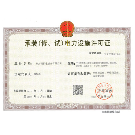 • 承裝(修、試)電力設(shè)施許可證(四級(jí))