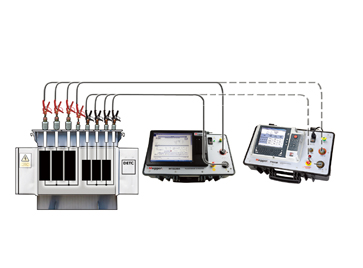 一經(jīng)接通后,MTO3XX 便可在無(wú)需重新連接的情況下, 對(duì)所有繞組進(jìn)行測(cè)量。測(cè)試程序簡(jiǎn)單高效。測(cè)試電纜的一端通過(guò)專門(mén)的開(kāi)爾文式鉗將變壓器的各個(gè)套管或端子連接起來(lái),另一端則連接到 MTO3XX 上。儀器自動(dòng)測(cè)量選定的高壓側(cè)或低壓側(cè)繞組的電阻。測(cè)試順序可選擇成同步磁化6-繞組測(cè)量,分別進(jìn)行高低壓三相繞組測(cè)量,或單繞組測(cè)量。